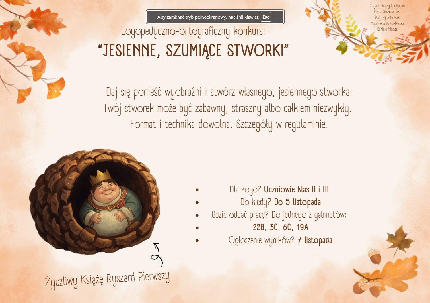 Zapraszamy Was do udziału w kreatywnym konkursie, który połączy jesienną magię z językową zabawą!