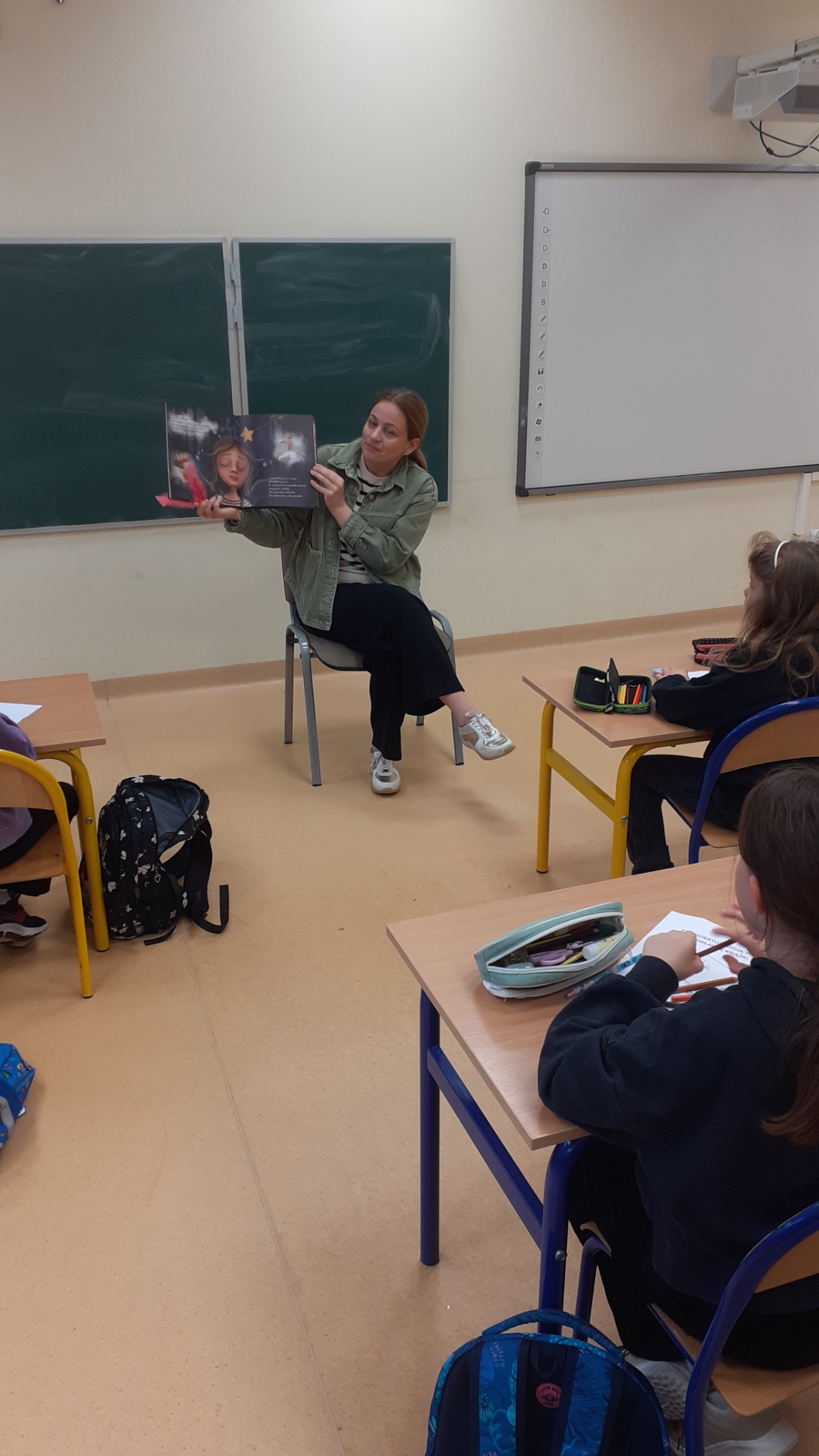 " Wypożyczalnia skrzydeł" gościła u klas 2, ilustrowana książka obrazkowa, pokazująca moc drzemiącą w czytaniu.