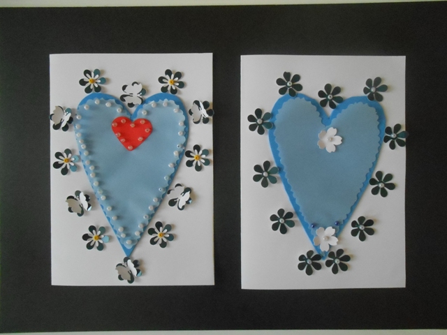 z makaronu i grochu; przyrodnicze inspiracje – kalkografia, obrazy z pasteli olejnych rysowane patykiem, obrazy malowane na kamieniu farbami akrylowymi; ozdobne pudełka na kredki; laurka przyjaźni wykonana